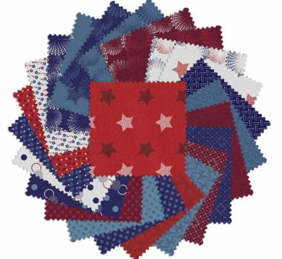 Documentaries - 5" x 5" Pack of 42 R/W/B by Canvas Studios for Benartex