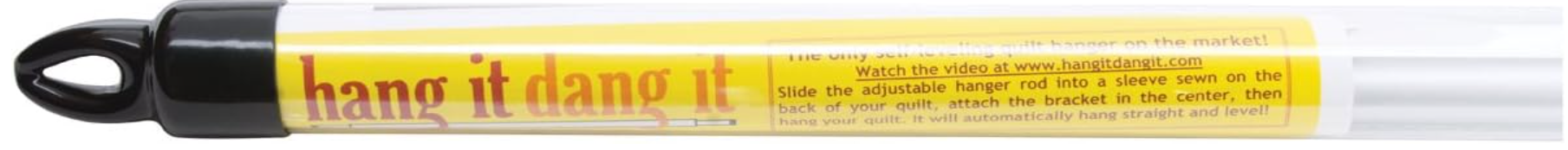 Hang your quilts easily and straight every time with this new quilt hanger. You only need one nail to hang your quilt. Simply slip the adjustable rod into the hanger sleeve on the back of your quilt, clip on the hanger bracket and pop your quilt on the wall. Holds up to 40lbs. A centered, adjustable bracket naturally balances the quilt.