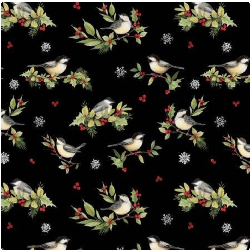Medley in Red - Chickadees on Black by Wilmington Prints