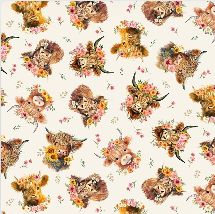 You Are My Sunshine - CD3885 Cream Tossed Highland Cows by Timeless Treasures